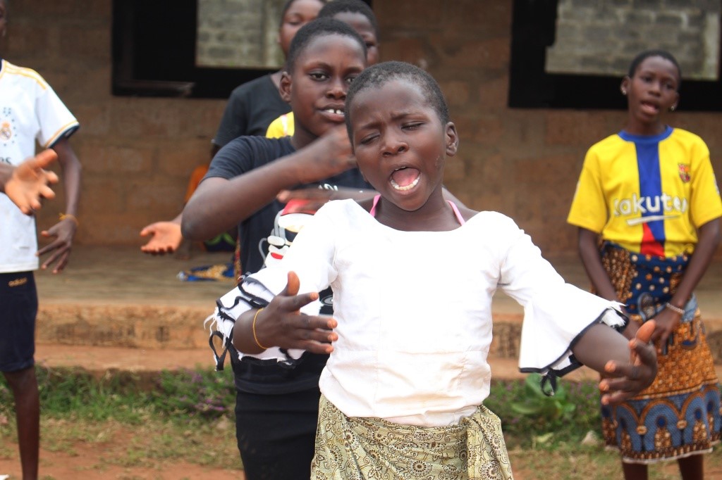 Pendant l’atelier de musique, l’artiste Fifamè et ses assistant.e.s ont renforcé les capacités des enfants sur les techniques vocales, de diction, de respiration et d’audition en musique. Ils/elles ont également appris à jouer de la percussion, à danser sur différents rythmes, créé avec eux/elles de nouvaux chants autour de la problématique de la protection de l’environnement et du vivre ensemble.